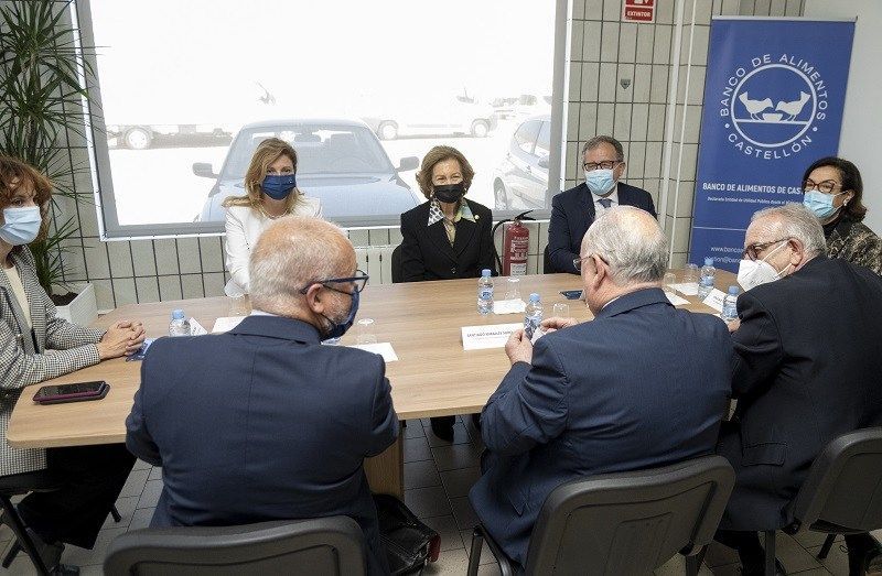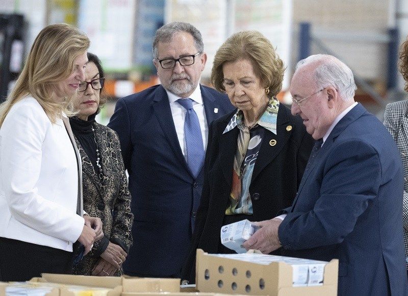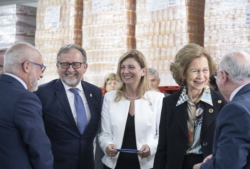 Donya Sofía, coneixedora de la gran labor social que desenvolupa el Banc d’Aliments de Castelló, ha felicitat pel seu funcionament al president, Santiago Miralles.