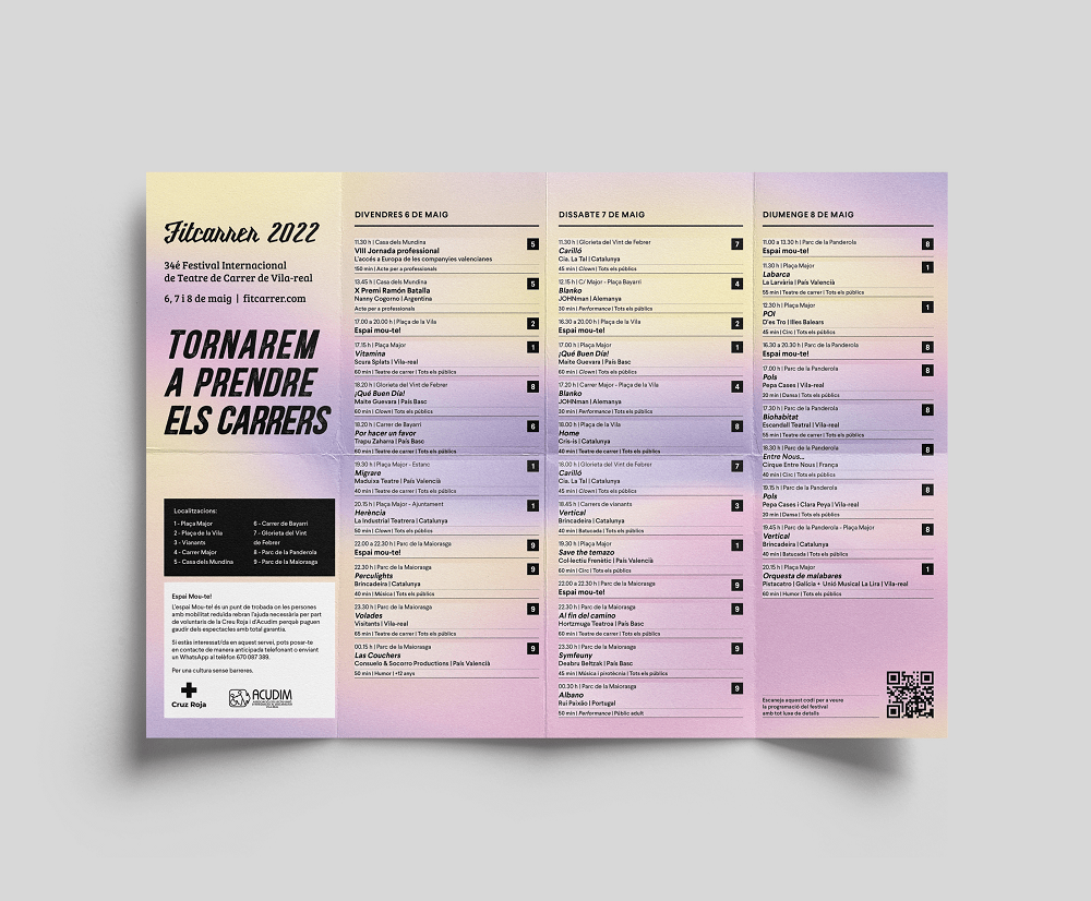 Els espectacles es desenvoluparan en 9 localitzacions diferents de la ciutat, tant en la zona centre com en els barris, i gràcies a la col·laboració de Creu Roja i Acudim hi haurà un Espai Mou-te perquè les persones amb mobilitat reduïda puguen gaudir dels espectacles sense cap problema d’accessibilitat.
