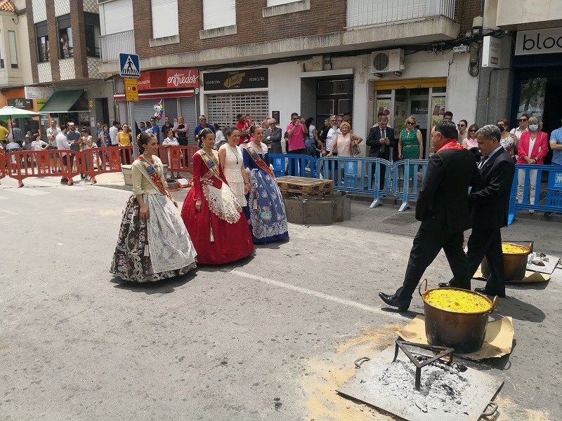 Poc després, a les 14 hores, el rector Juan Ángel Tapiador, davant Galí i la reina de les festes, María Gonell, i la seua cort d’honor va beneïr les calderes per a procedir al repartiment de les prop de 8.000 racions d’arròs. Vicente Arquimbau va ser l’encarregat de capitanejar, un altre any més, a l’equip de cuina i ajudants per a atendre a tots aquells veïns que acudeixen pel plat típic del 22 de maig. Cada caldera estava composta per 14 quilos d’arròs i 14 de pollastre, un tros i mig de costella, un litre d’oli, 2’5 quilos de pésols, 2 quilos de tomaca triturada, alls, safrà i sal.