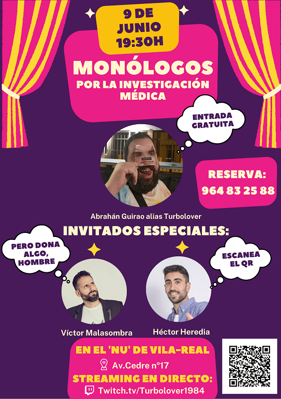 Este evento tendrá lugar el próximo jueves 9 de junio, a las 19.30 horas, en el restaurante NU de Vila -real (avenida Cedre, nº17) y también se podrá seguir en directo a través de http://www.twitch.tv/turbolover1984. La entrada es gratuita pero se habilitarán urnas y códigos QR para que el público pueda donar a medida que se desarrolla el acto y así colaborar con la causa benéfica.