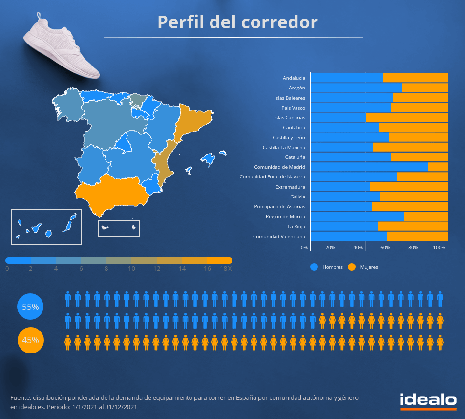 La igualdad en el deporte es uno de los retos que la sociedad española se ha propuesto para los próximos años, ya que hay disciplinas donde el género masculino está sobrerrepresentado: el fútbol o el baloncesto son claros ejemplos. A pesar de ello, hay prácticas deportivas donde esta labor se ha llegado a materializar: un ejemplo de ello es el running. Así lo demuestra el análisis elaborado por el comparador de precios idealo.es que revela que el 44 % de las runners en España son mujeres, a raíz de los datos de demanda recopilados en el último año.