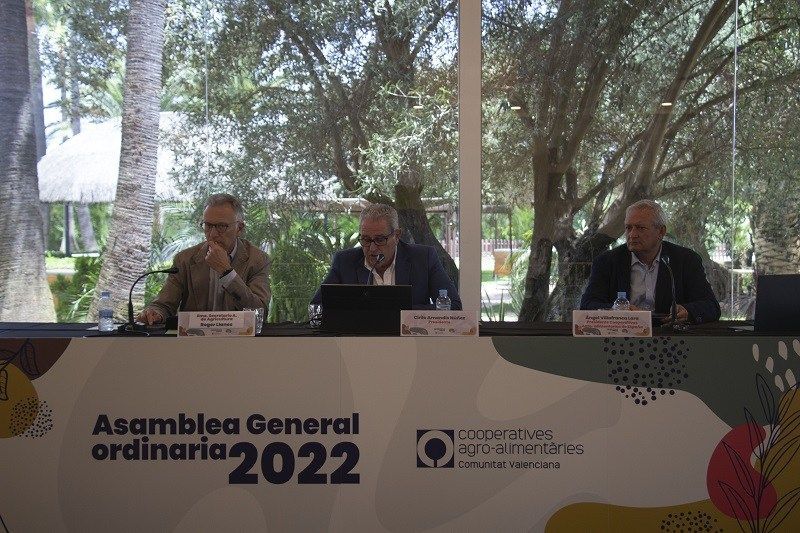 En el acto de clausura de la Asamblea han participado el presidente de Cooperativas Agroalimentarias de España, Ángel Villafranca; el presidente de Cooperatives Agro-alimentàries de la Comunitat Valenciana, Cirilo Arnandis; y el secretario autonómico de Agricultura y Desarrollo Rural, Roger Llanes.