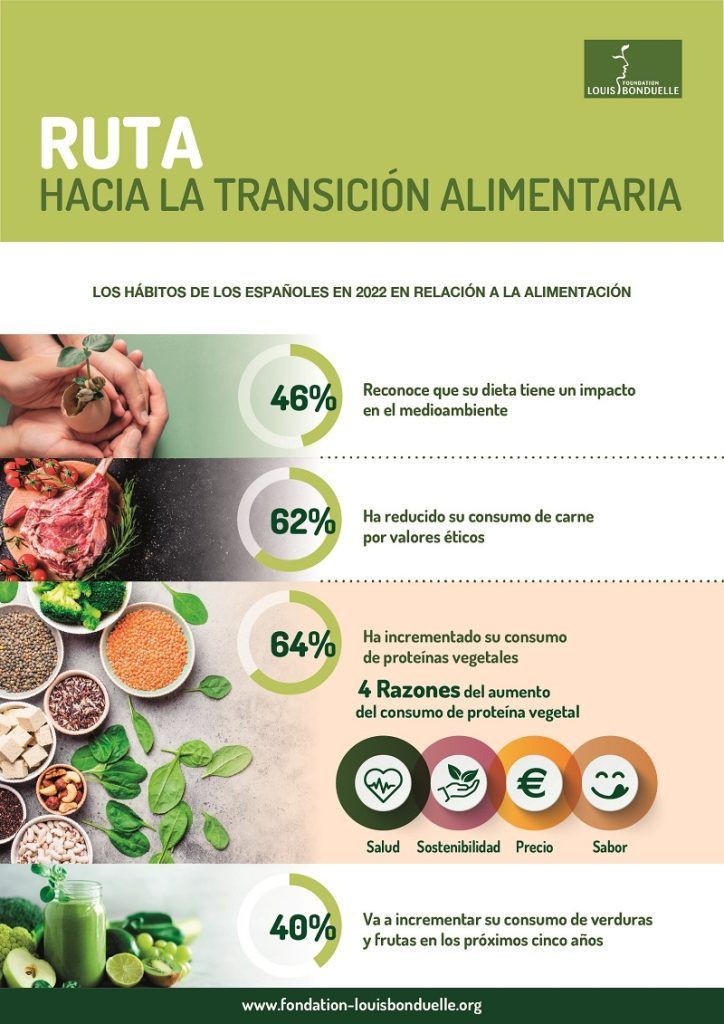 Según algunos estudios la industria alimentaria es responsable de más de la mitad de la huella ecológica que generan los españoles, por delante de la movilidad y la vivienda. Además, si se redujera a la mitad el consumo de productos de origen animal y se incrementara el consumo de vegetales, el impacto medioambiental podría reducirse hasta el 40% en algunos de los indicadores de cambio climático1. Esta realidad en pro de un desarrollo sostenible gana cada vez más peso en España, ya que según revela el estudio ‘Ruta hacia la transición alimentaria’, realizado por la Fundación Louis Bonduelle, el 64% de los españoles afirma que ha incrementado el consumo de proteínas vegetales este año, siendo la salud (78%) y la sostenibilidad (48%) las razones principales de este aumento. Tras estos motivos, le siguen su precio (26%) y su sabor (21%), que completan los factores más importantes para los españoles a la hora de consumir vegetales.
