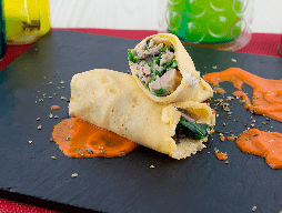 Crepes frías de atún con queso y salsa de pimientos