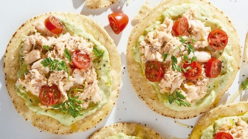 Tostadas con atún, aguacate y tomate