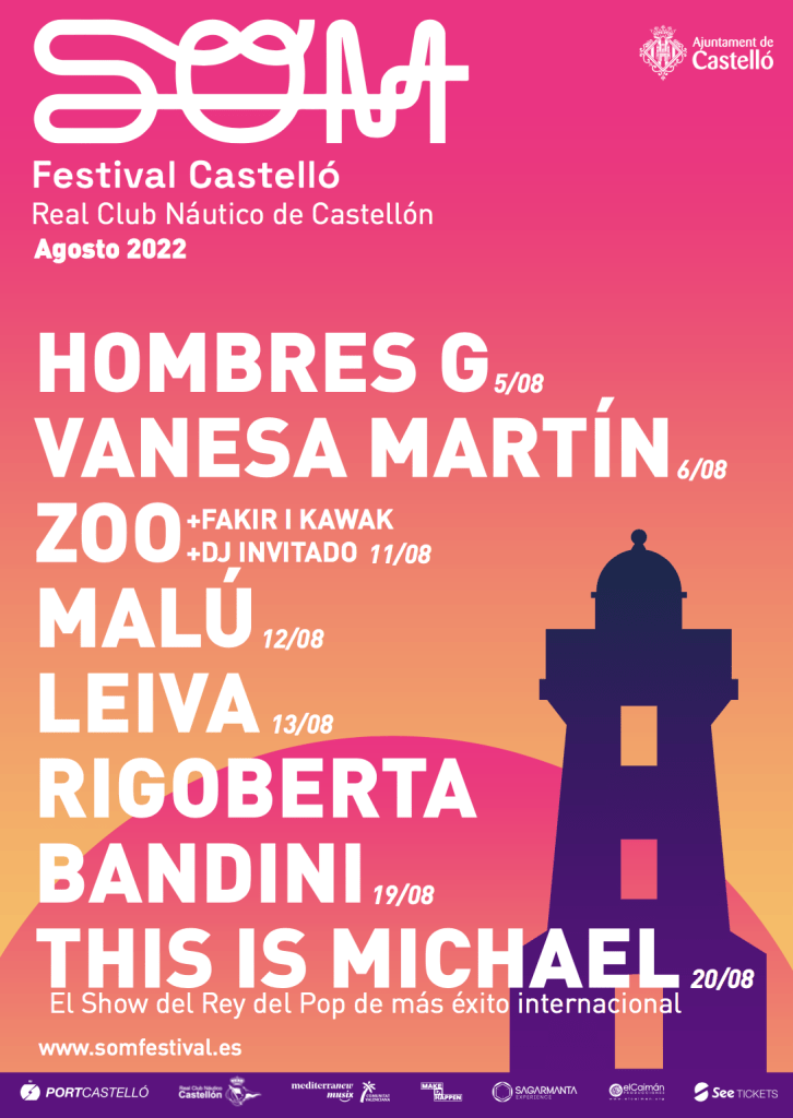 La segunda edición del SOM Festival Castelló empezará el próximo viernes 5 de agosto con la presencia de Hombres G. Los madrileños recuperarán los clásicos que los convirtieron en una de las formaciones de más éxito de la década de los 80 y, también, aprovecharán para presentar su último trabajo, La esquina de Rowland. Un día después, el sábado 6, el escenario situado en el Real Club Náutico del Grau acogerá la actuación de la cantante Vanesa Martí n . Tras un tiempo apartada de los directos, la vocalista malagueña ha vuelto a conquistar al público con la gira Siete veces sí.