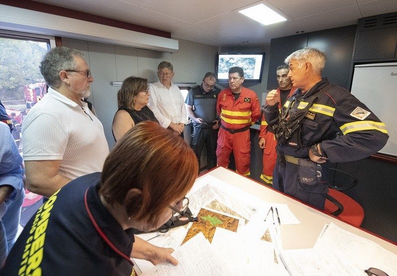 El president de la Diputació de Castelló, José Martí, ha acompanyat al president de la Generalitat, Ximo Puig , en la reunió de coordinació de Bombers Diputació de Castelló en la qual han explicat la situació de l’incendi forestal declarat a Bejís després de l’evacuació preventiva dels municipis de Bejís, Teresa i Torás i el confinament de la població de Viver.