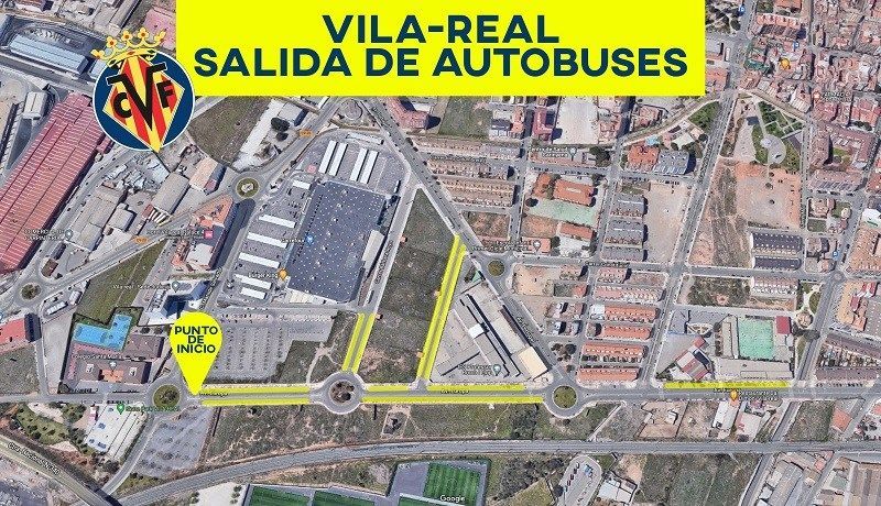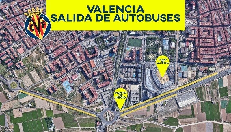 - Los autobuses dejarán a los seguidores groguets en la Avenida Hermanos Machado de Valencia, junto al Ciutat de València. Desde este mismo punto, deberán volver a coger el autobús tras el encuentro para volver a Vila -real.