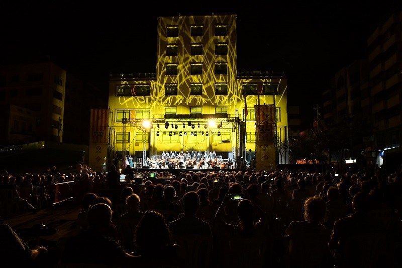 Imatges del concert que va oferir ahir la Coral Sant Jaume a la plaça Major amb motiu del seu 40é aniversari, que va tenir lloc en 2020 però que no es va poder commemorar per la pandèmia. Amb motiu d’aquest aniversari, l’alcalde, José Benlloch, i la reina de les festes, María Carmona, van lliurar una al·legoria al director de la coral, Alfredo Sanz , i la presidenta, Amparo Peña , en reconeixement a la tasca que la coral ha realitzat durant aquestes quatre dècades per a la difusió i promoció de la música. A l’acte va assistir també la diputada provincial de Cultura, Ruth Sanz .