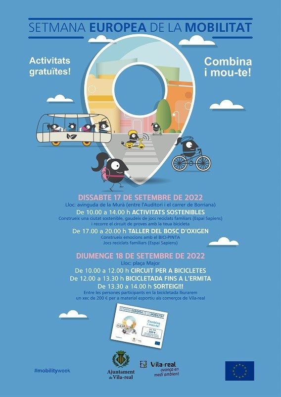 L’Ajuntament de Vila -real, a través de la Regidoria de Medi Ambient, se suma a la Setmana Europea de la Mobilitat amb accions de conscienciació i activitats lúdiques per a promoure els desplaçaments sostenibles en l’entorn urbà, que es realitzaran entre el dissabte 17 i el diumenge 18 de setembre.