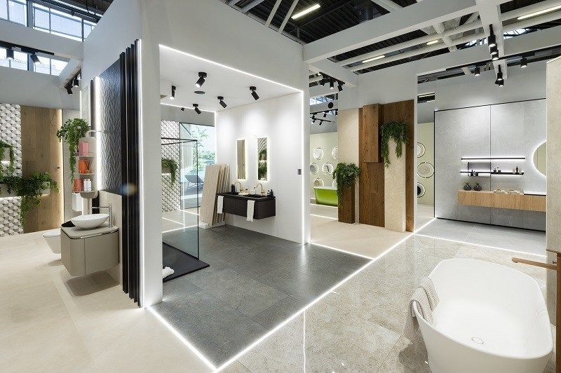 Un total de 13 ambientes formados con productos y materiales de las firmas Porcelanosa, Noken, L’Antic Colonial, Krion, y Gamadecor ocuparán los 400 metros cuadrados del stand principal de la compañía (A296-B198).