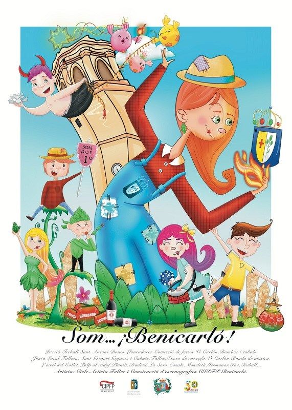 D’una banda, la falla infantil ha estat dissenyada pels alumnes del Grau d’Artista Faller i Escenografia del Centre Integrat Públic de Formació Professional de Benicarló i representa el lema «Som Benicarló», que uneix diferents motius característics de la ciutat, com la carxofa i el campanar de Sant Bartomeu, a més d’actes de festes típiques com la foguera de Sant Antoni i la nit dels fanalets de meló de les Festes Patronals.
