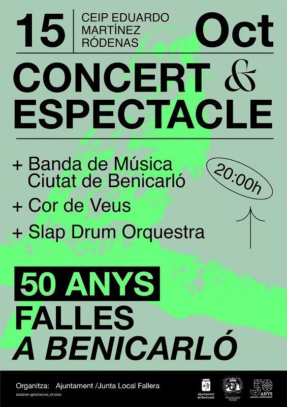El proper mes de març, les Falles de Benicarló commemoraran el seu 50 aniversari i la ciutat ho començarà a celebrar aquest dissabte 15 d’octubre amb un concert-espectacle en el qual participaran quasi 40 bateries de l’Slap! Drum Orquestra, 100 músics de l’Associació Musical Ciutat de Benicarló i un cor amb més de 60 veus. L’espectacle tindrà lloc a les 21 hores al pati del col·legi Eduardo Martí nez Ródenas i l’entrada serà gratuïta.