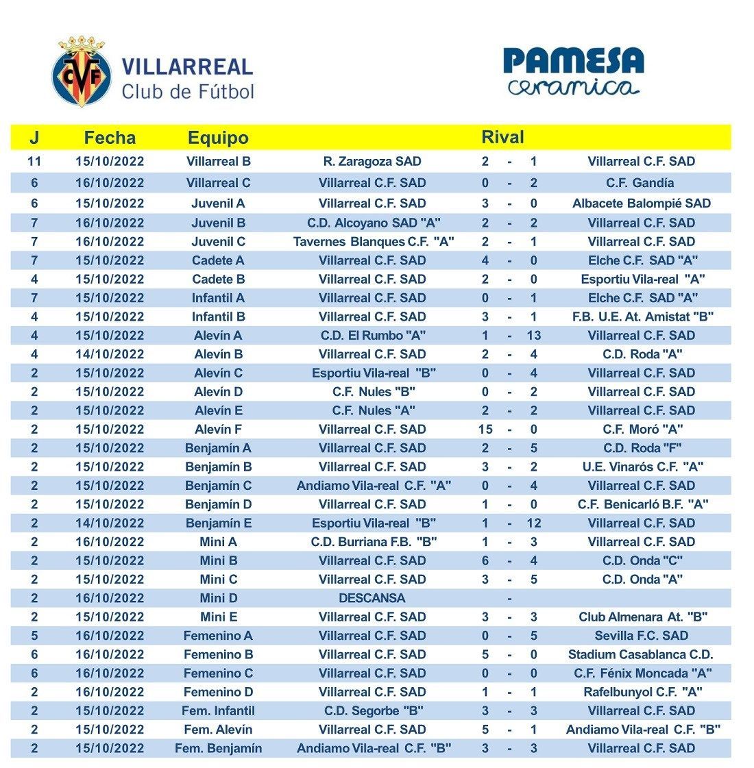 Notable fin de semana para los equipos de la Cantera Grogueta. Hasta 16 conjuntos del Villarreal lograron sumar los tres puntos esta jornada. El triunfo más destacado fue el del Juvenil A, que consiguió superar al Albacete por 3-0 en casa.