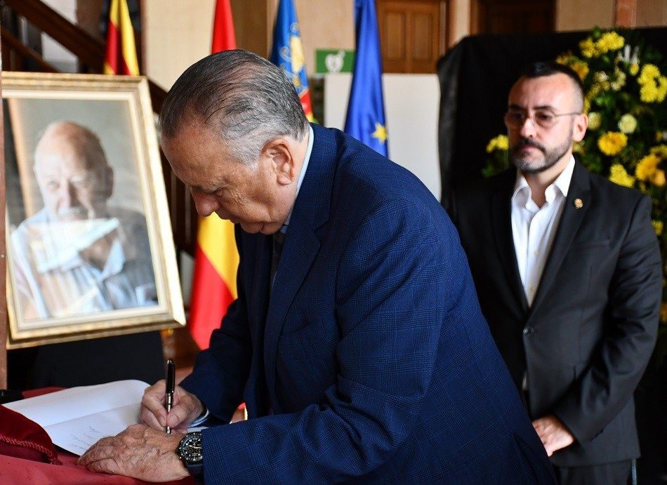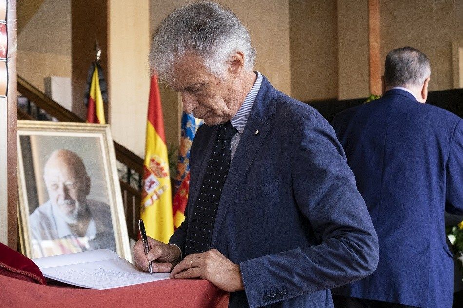 Imatges de la signatura al llibre de condolences en memòria de José Manuel Llaneza Durá, Medalla d’Or de la ciutat i vicepresident del Villarreal CF, per part de l’alcalde de Vila -real, José Benlloch, i el president del Villarreal CF, Fernando Roig. L’alcalde ha destacat la gran qualitat humana de José Manuel Llaneza i el seu esperit d’il·lusió i esforç.