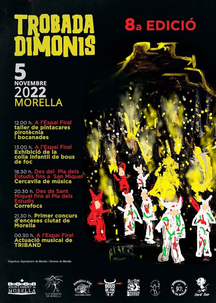 Demà dissabte es reuniran a la capital dels Ports colles de dimonis de diferents punts de la Comunitat Valenciana, Aragó, Catalunya i d’Euskadi. En aquesta ocasió en seran set: Botem-li foc grup de diables d’Alcanar, Bous de foc de Santpedor, Diaples da Uerba, Dimonis la Ràpita, Dimonis de la Plana i Devil Bao junt als amfitrions Dimonis de Morella.