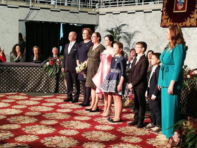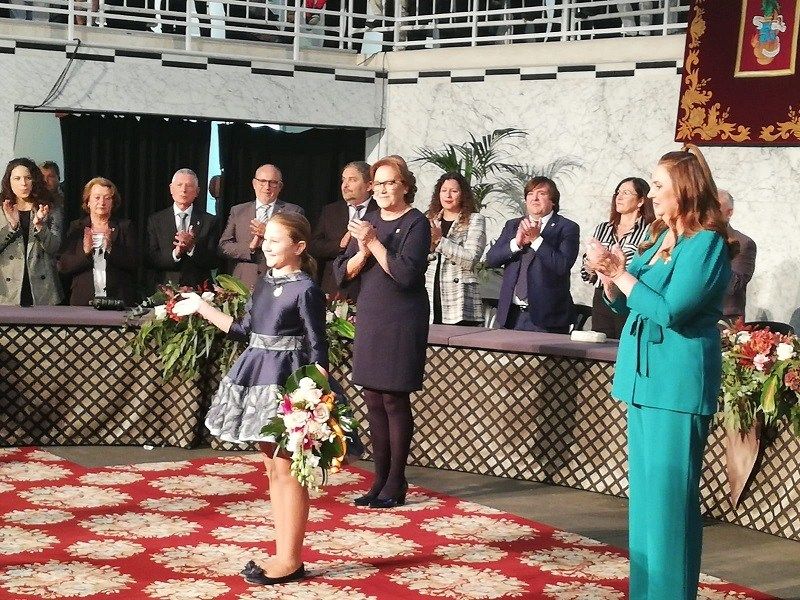 L’alcaldessa li ha lliurat el pergamí i el ram de flors protocol·laris que l’acrediten com a màxima representant infantil de les pròximes Falles de 2023, al mateix temps que li ha imposat la joia de la Junta Local Fallera.