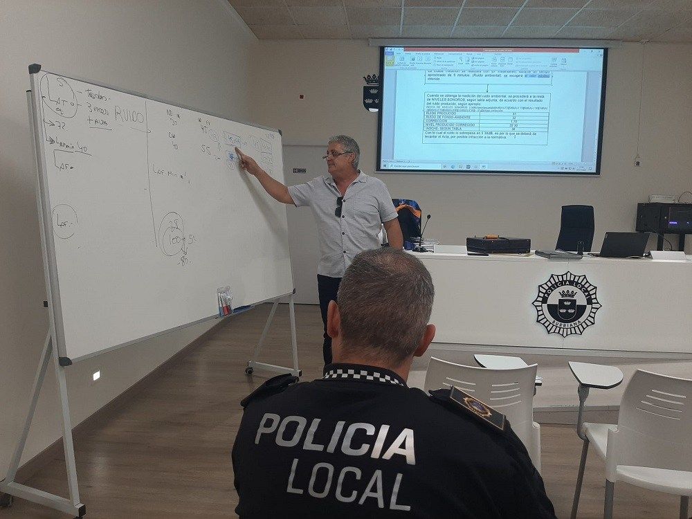 La formació ha estat a càrrec de l’inspector cap de la Policia Local de Finestrat (Alacant), Agustín Rubio , comandament policial de dilatada experiència en el control d’establiments en una zona tan turística com la Vega Baixa alacantina, de notable saturació d’activitats generadores de contaminació acústica.