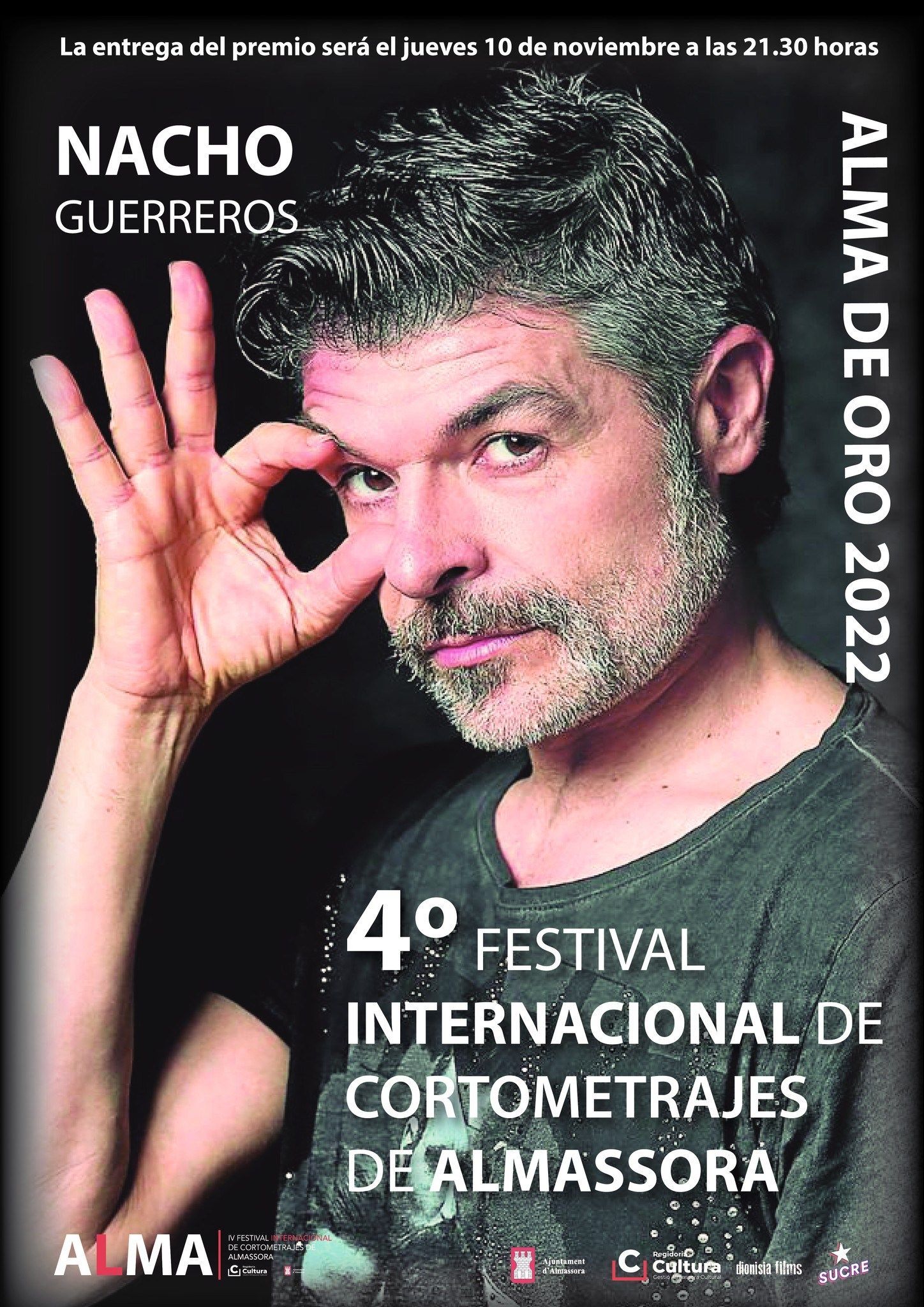 L’actor Nacho Guerreros, reconegut nacionalment per la seua participació en sèries, pel·lícules i curts, recull hui l’Alma de Oro en l’IV Festival de Curtmetratges d’Almassora. Guerreros assisteix aquesta vesprada a la Casa de la Cultura per a obtindre el guardó en reconeixement a la seua trajectòria com a intèrpret a partir de les 20 hores. L’actor, que ha participat en més de 20 curtmetratges en la seua carrera artística, mostrarà la seua última producció als presents en l’acte.