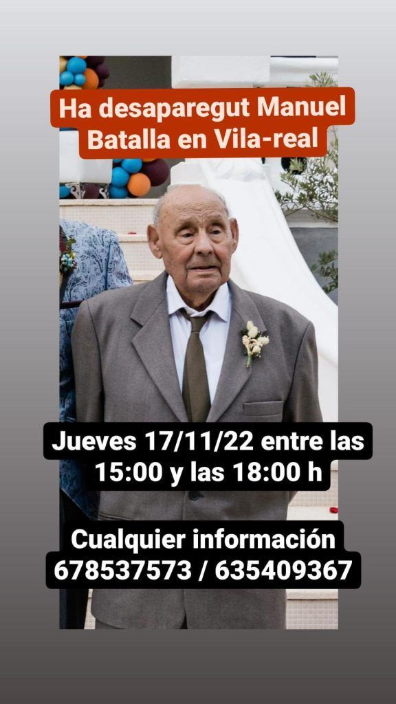 Lectura: ACTUALIZACIÓN: LOCALIZADO – Desaparece un anciano en Vila-real