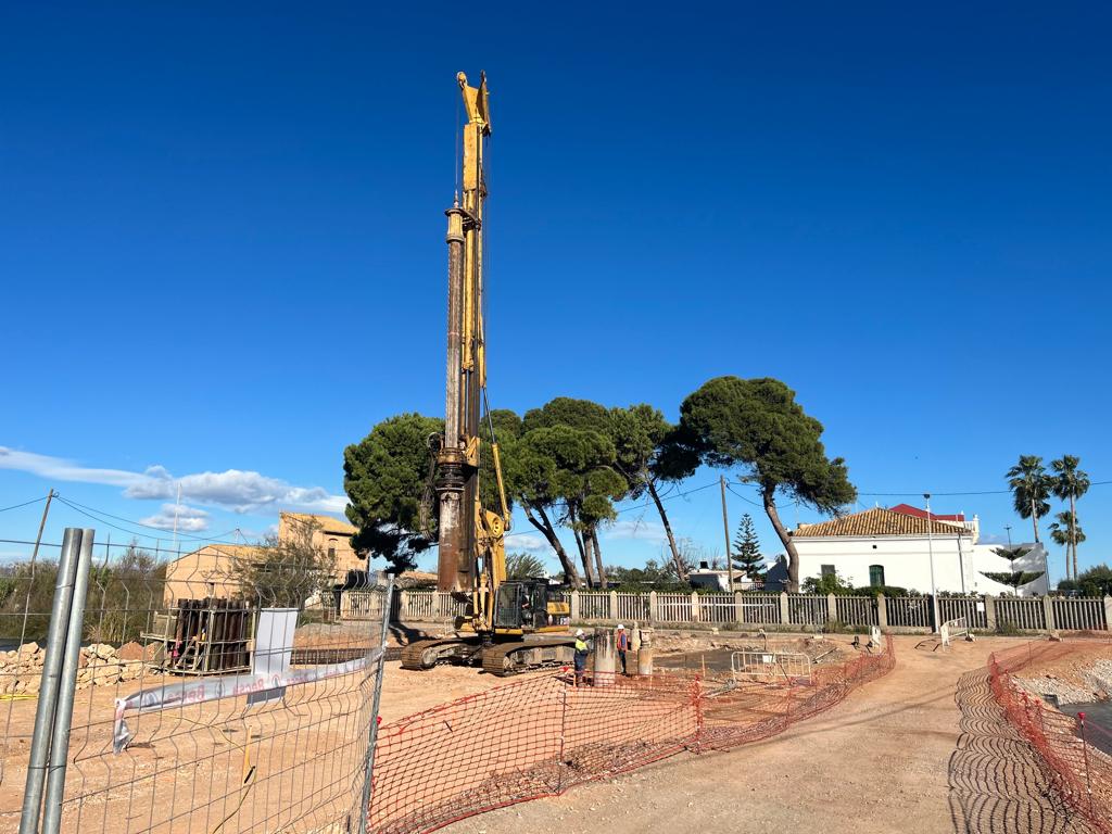 Borriana (29.11.22).- La màquina pilonadora ja està realitzant els fonaments de pals llargs de l’estructura de la nova passarel·la fixa de formigó de l’Estany de la Vila o Clot de la Mare de Déu, que comporta la construcció d’un total de 20 pilons de formigó armat de 9 metres de profunditat i 650 mm de diàmetre, segons han avançat l’alcaldessa de Borriana, Maria Josep Safont, que ha visitat els treballs, amb el regidor de Medi Ambient, Bruno Arnandis, i el regidor de la Zona Marítima, Vicent Aparisi.