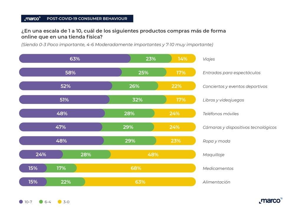 A la hora de conectar con el consumidor, también es importante conocer cómo su conducta ha cambiado tras las repercusiones de la pandemia. Según la encuesta elaborada por MARCO, el 67% de los europeos afirma que han comenzado a comprar más a través de internet desde la llegada del coronavirus. En el caso de los españoles, este porcentaje se reduce hasta el 57%. Asimismo, más del 90%, tanto de nacionales como europeos, afirman que seguirán adquiriendo productos a través de e-commerces. Estas tendencias son conocidas por las grandes multinacionales del retail que están dejando atrás las tiendas físicas y apostando por una estrategia cada vez más digital.