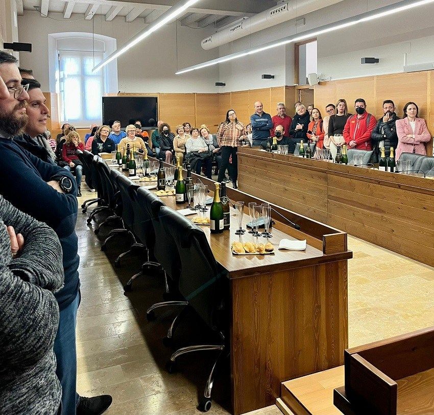 Con todo, el personal municipal junto con los representantes políticos del Ayuntamiento de Nules han podido disfrutar de este acto brindando con cava y degustando dulces navideños.