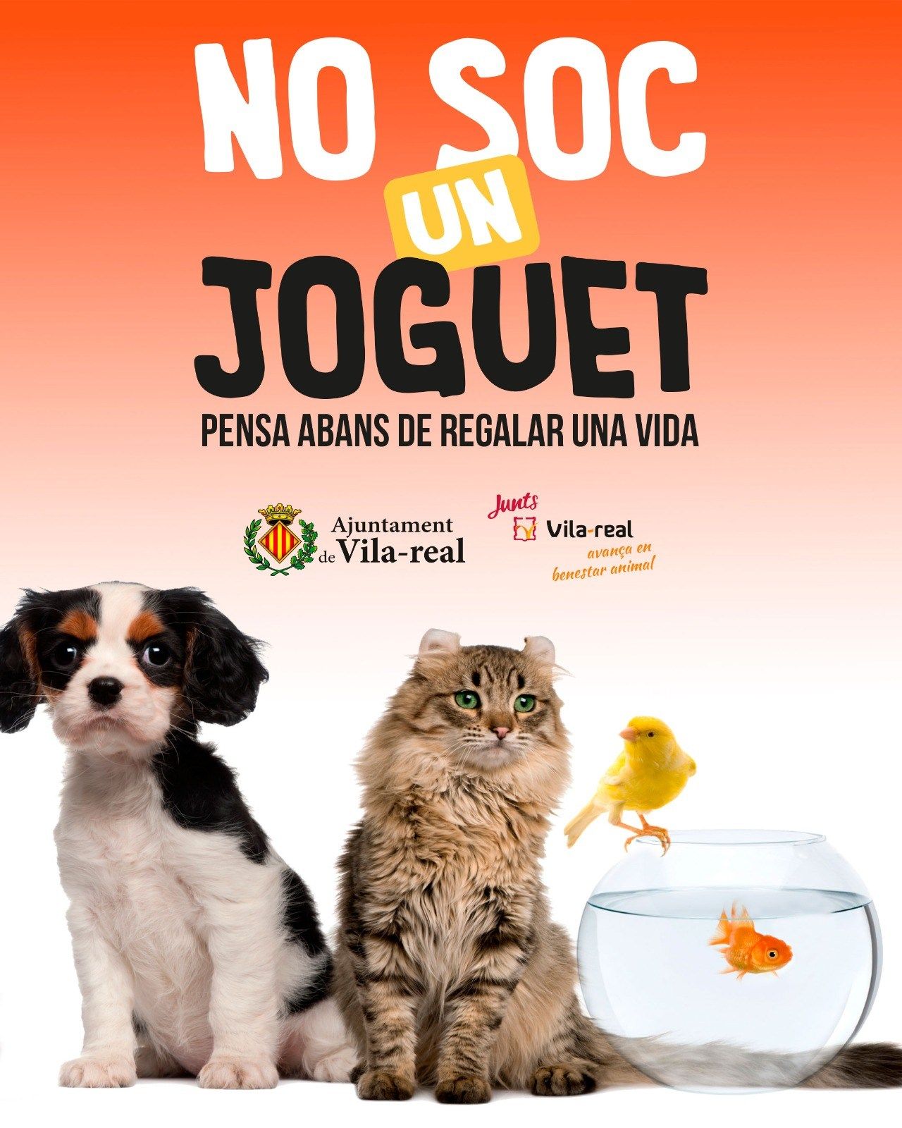 La Regidoria de Benestar Animal ha llançat una campanya de conscienciació per a demanar a la ciutadania responsabilitat a l’hora de regalar mascotes durant aquestes festes nadalenques. La campanya porta per lema ‘No soc un joguet. Pensa abans de regalar una vida’ i pretén “evitar que els animals que es regalen durant el Nadal puguen acabar després abandonats”. Així ho ha explicat la regidora responsable de l’àrea, Miriam Caravaca, qui ha subratllat que “una mascota no és una diversió, ni un joguet, és un ésser viu que requereix de cures per a garantir el seu benestar i és necessari un compromís per a assegurar la protecció de l’animal”.