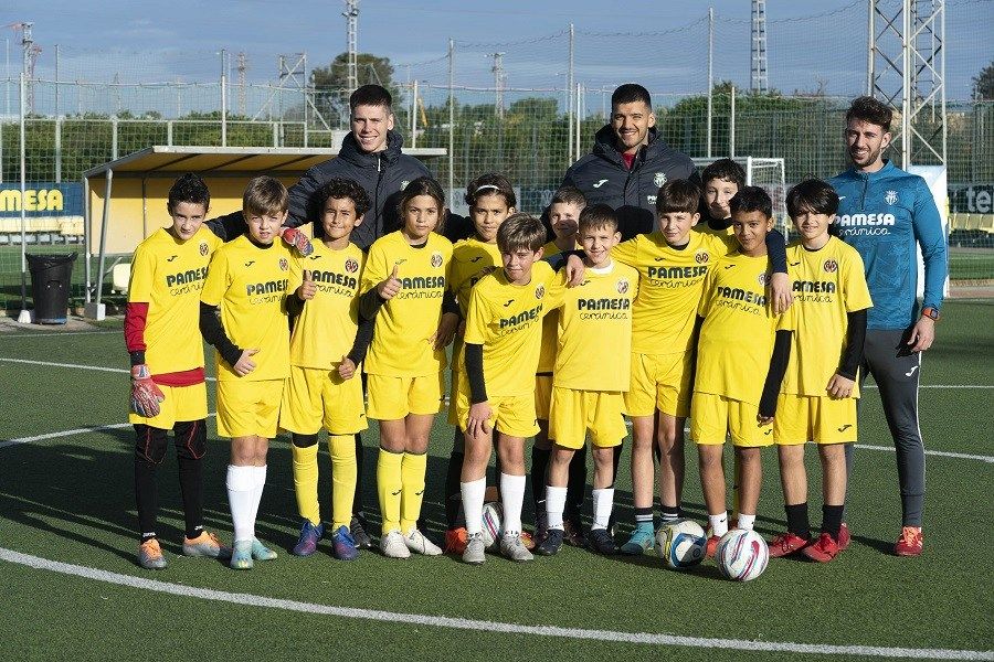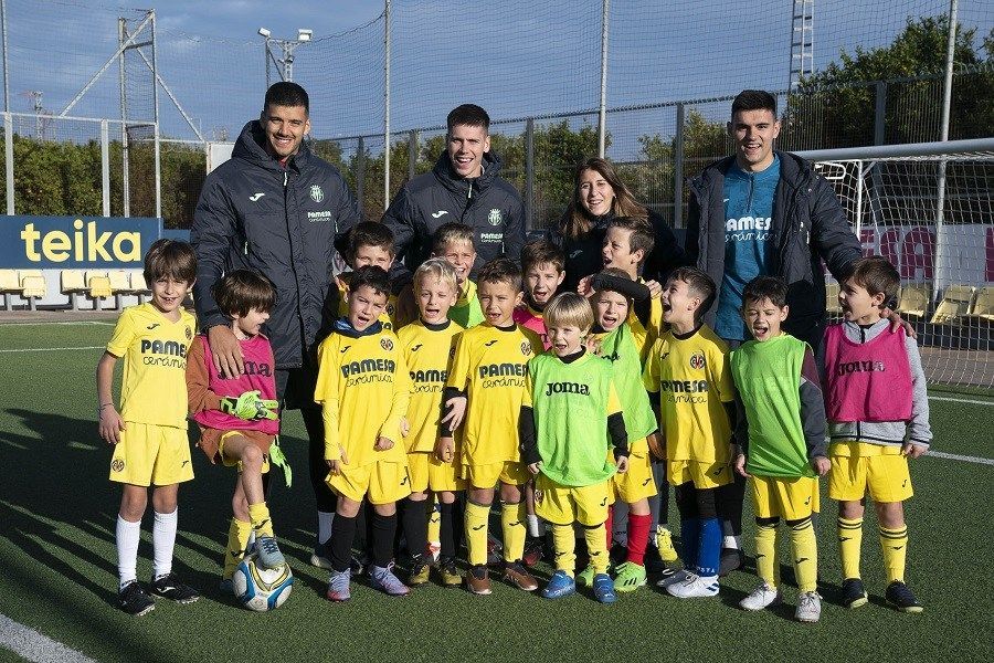 Los recientes campeones del mundo groguets con Argentina, Gero Rulli y Juan Foyth, visitaron a los más pequeños en el campus que se está celebrando en la Ciudad Deportiva José Manuel Llaneza.