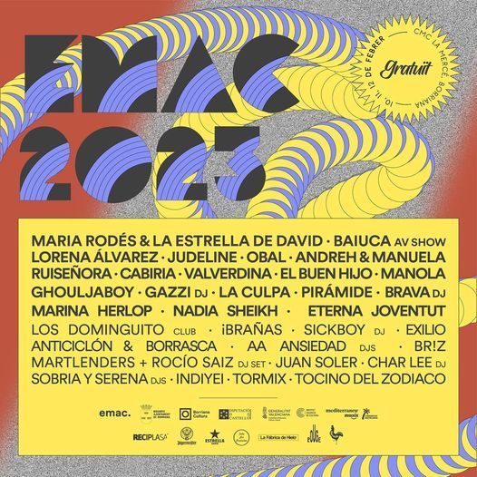 Una mica més endavant, en el període de realització de les activitats commemoratives de les festes patronals de Sant Blai, se celebraran dos dels festivals més interessants de l’any. D’una banda, l’Emac. 2023, la cita anual amb la música més alternativa i les arts plàstiques, un festival pel qual des de la Regidoria de Cultura sempre s’ha apostat fort i que ha aconseguit posicionar Borriana en el mapa nacional dels festivals de música independent. La cita serà els dies 11, 12 i 13 de febrer.