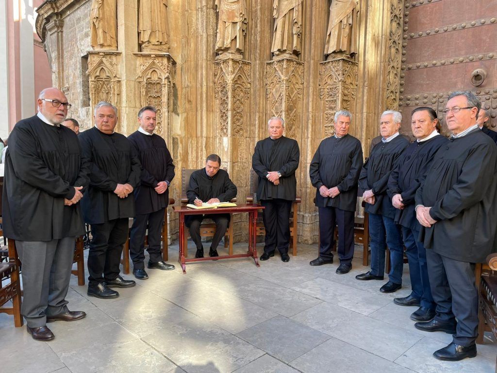 La comisión permanente de Fecoreva, con su presidente Pascual Broch al frente, ha estado presente en la sesión de imposición del Blusón del Tribunal de las Aguas al ministro de Agricultura, Pesca y Alimentación, Luis Planas