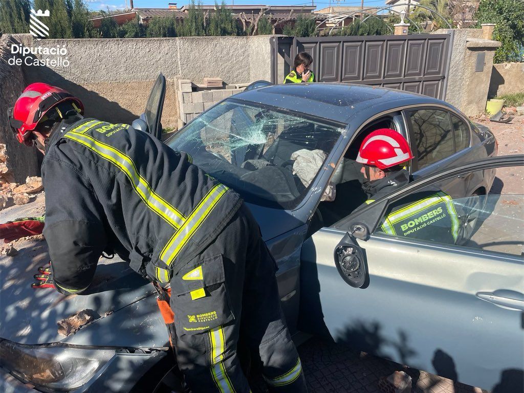 Bombers del parc de la Plana Baixa han intervingut en un accident on un turisme s’ha eixit de la via, ha xocat contra la paret del pati d’un habitatge en el Sedeny de la Democràcia de Vila -real, derrocant-la, entrant en el seu interior i derrocant una segona paret.