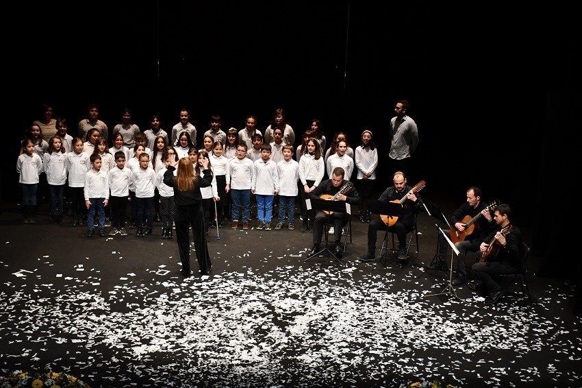 Y después del segundo reconocimiento de la noche, la música volvió a ser la protagonista. Concretamente la música de José Vicente Broch, Santiago Campos, Francisco Ruiz y Sergi Andreu , que interpretaron melodías populares en homenaje a Vila -real, con arreglos del maestro Rafael Beltrán, y a las que pusieron voz los niños y niñas de los coros escolares de Botànic Calduch y Concepción Arenal, bajo la dirección de Ana Pitarch.