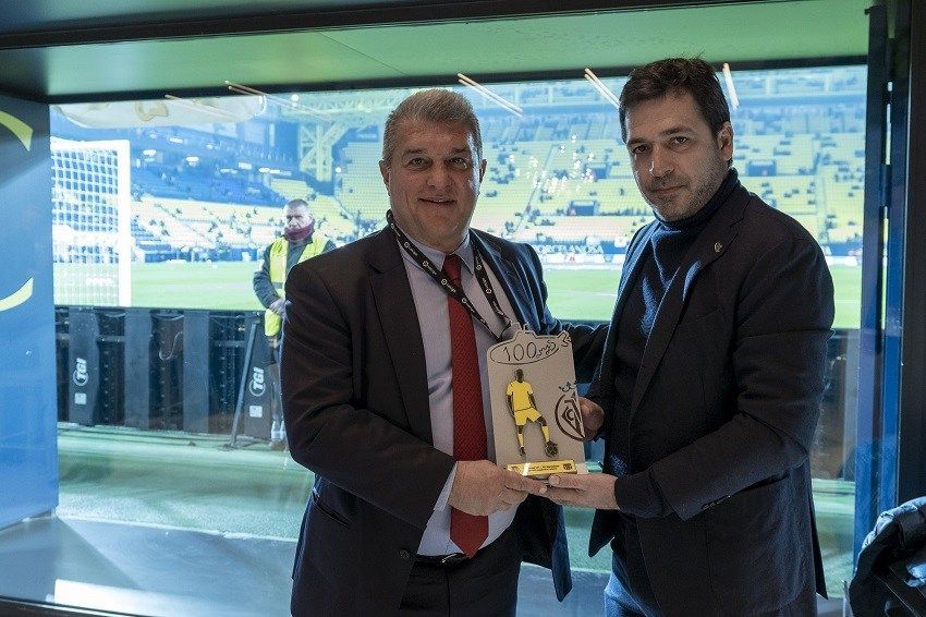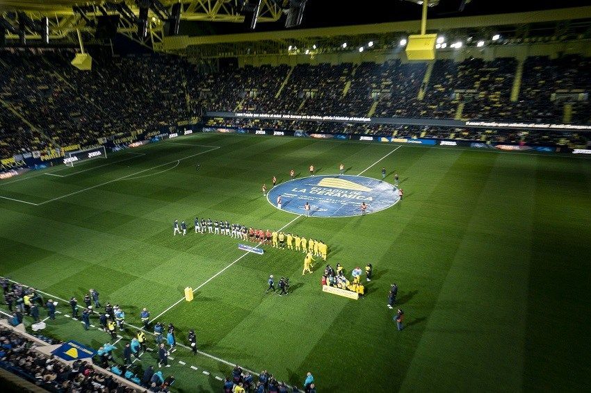 El Estadio de la Cerámica estrenó en la previa del partido ante el FC Barcelona un espectacular show de luces. Con las gradas llenas de aficionados, hubo dos momentos destacados: el primero cuando el speaker local cantó la alineación del Villarreal y el segundo cuando saltaron los onces de los dos equipos más el trío arbitral. En este, las luces fueron al compás del himno del centenario del club, compuesto por Nacho Cano .