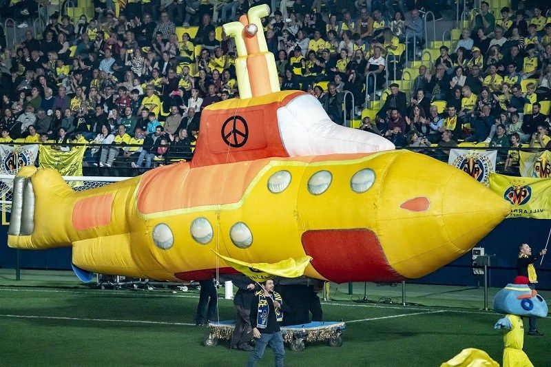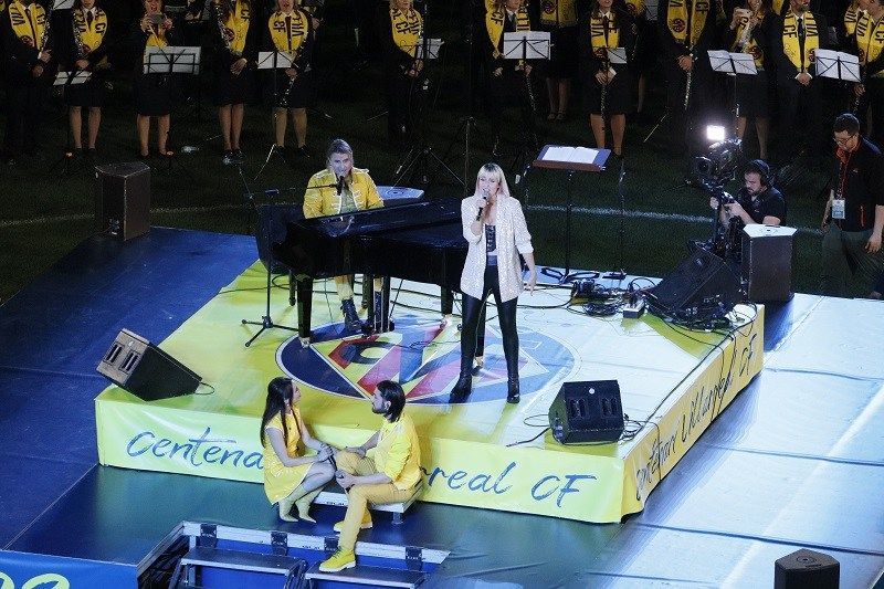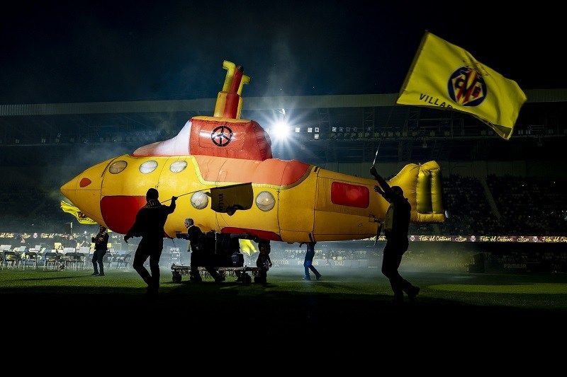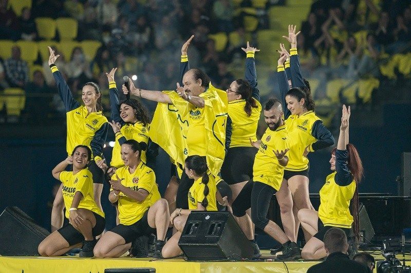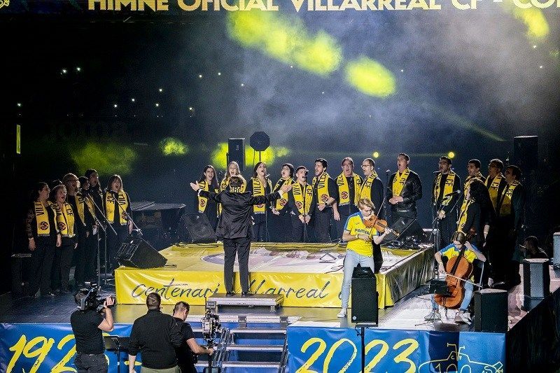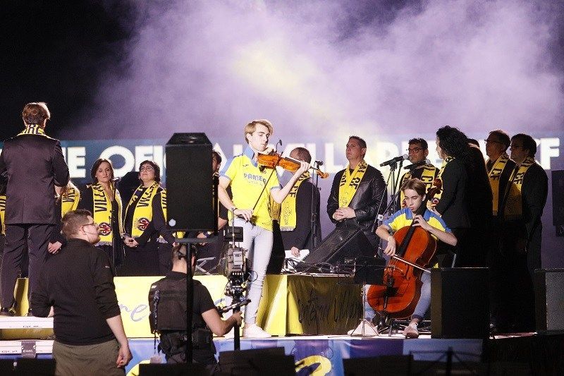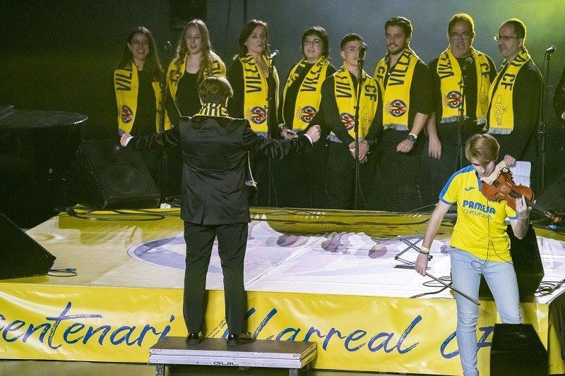 El cantante de Los Mustang, Santi Carulla, interpretó la canción que dio una identidad al club, acompañado de la reconocida compañía de teatro de Vila -real, Xarxa Teatre, y el mítico submarino amarillo hinchable de las grandes gestas modernas.