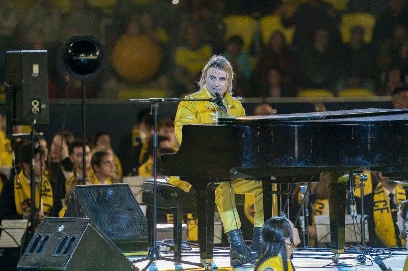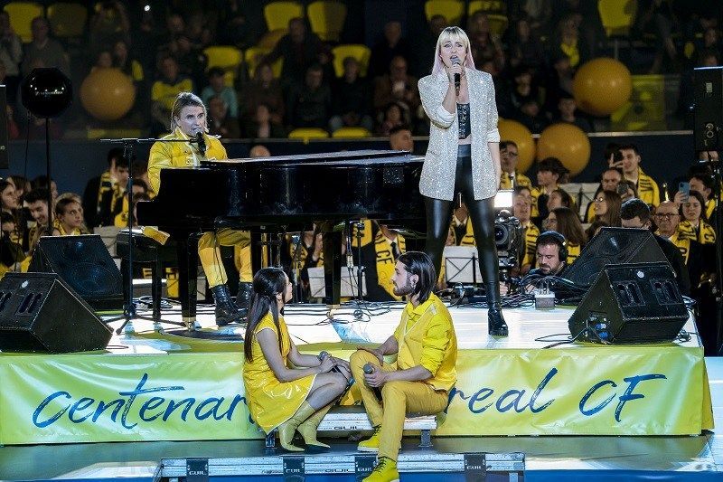El Villarreal cumple un año más y lo celebra con el clásico de Mecano, con Nacho Cano en el piano y la voz de la cantante Kuve.