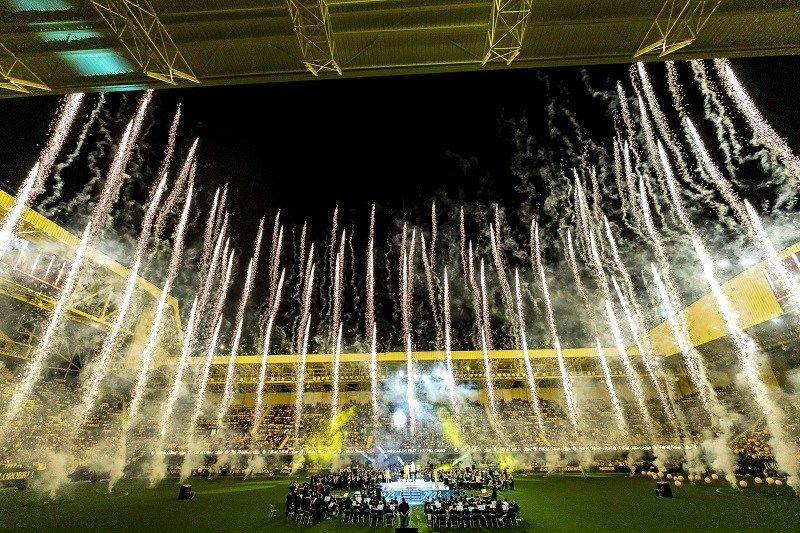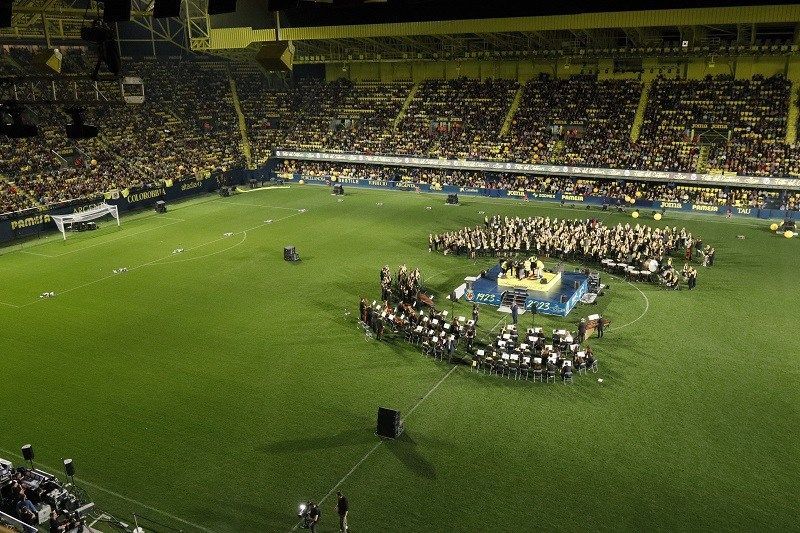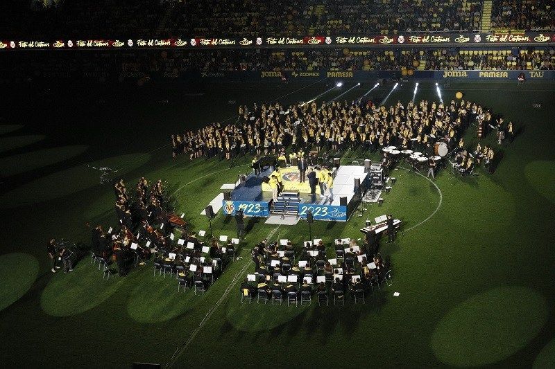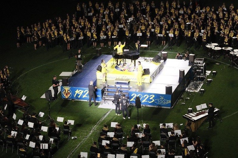 Vibrante, bonita, emotiva, histórica… casi 20.000 aficionados han disfrutado por todo lo alto de la fiesta del centenario del Villarreal CF en un Estadio de la Cerámica abarrotado y entregado que rememoró todas las épocas del club y la ciudad, en una celebración que contó con la participación de 7 asociaciones, 7 bandas de música de la provincia y 7 artistas individuales, lo que supuso una puesta en escena en total de 600 personas. Un espectáculo inédito que quedará en el recuerdo de todos los groguets para siempre. ¡Impresionante!