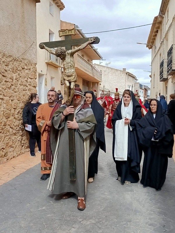 Com és tradicional, els membres de la confraria han escenificat diferents moments de la passió, mort i resurrecció de Jesús , una representació en la qual també han participat, l’alcalde, José Benlloch, i la regidora de Tradicions, Noelia Samblás.