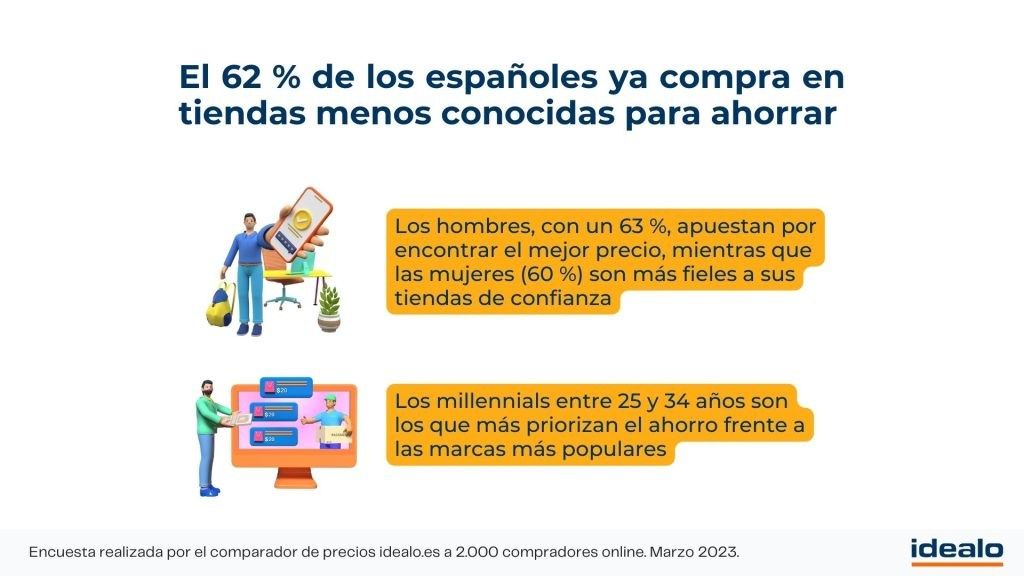 - Los hombres, con un 63 %, apuestan por encontrar el mejor precio, mientras que las mujeres (60 %) son más fieles a sus tiendas de confianza
