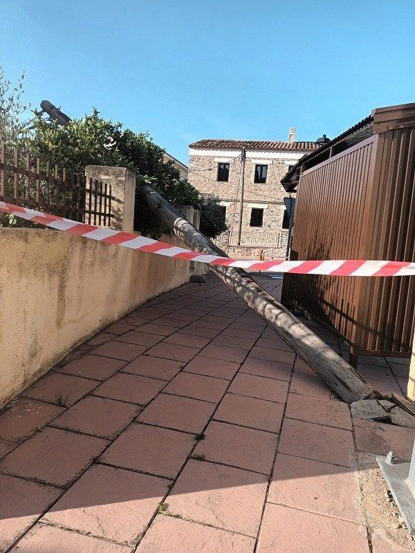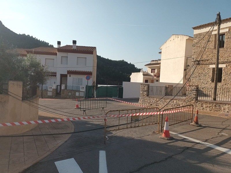 Este jueves ha caído un poste de cable telefónico y fibra sobre el jardín de una vivienda de Argelita, en la carretera de Ludiente y frente al antiguo cuartel de la Guardia Civil. Se ha producido tras registrarse una tormenta y los cables descolgados cerraron el acceso principal al pueblo.