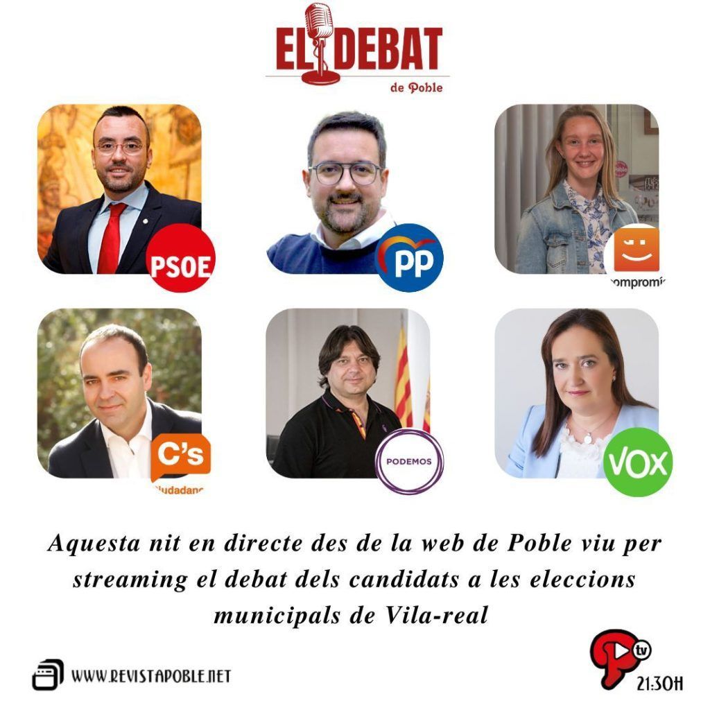 El debate se transmitirá en la web de POBLE, en Facebook y en el canal de Youtube de revista POBLE, permitiendo a los ciudadanos de Vila -real conocer las propuestas de los candidatos del PSOE, PP, Compromís, Ciudadanos, Unides Podem-EU y Vox.