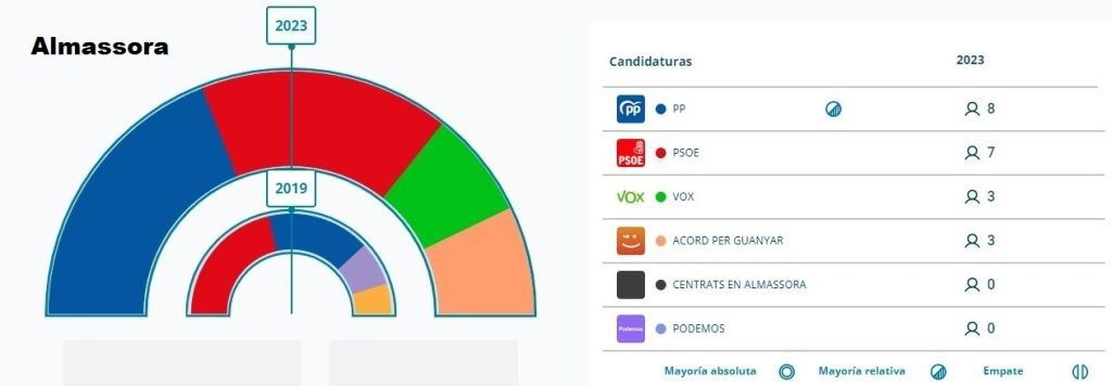 “Almassora ha pedido cambio y vamos a trabajar para estar a su altura”. Así lo ha declarado hoy la alcaldable del PP, María Tormo, que ha conseguido con su candidatura la mayoría de votos en la localidad. Con 4.312 votos, un 36,72% de los votos obtenidos, María Tormo logra convertirse en la fuerza más votada tras conseguir 1.293 votos más que en 2019 en una campaña en la que ha apelado a la moderación frente a la tensión y la crispación que han tratado de imponer otros.