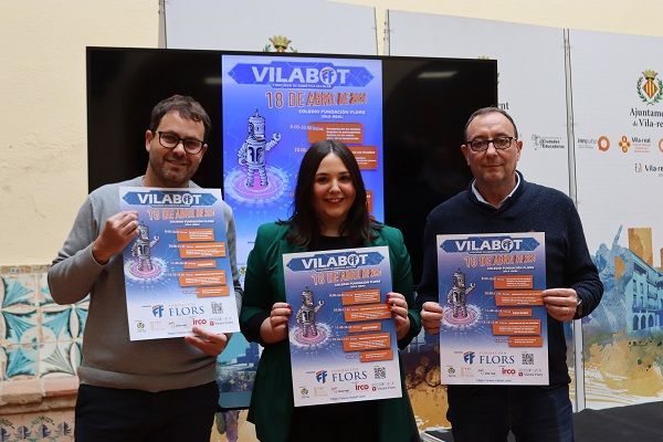 VilaBOT, el concurso de robótica escolar impulsada por Fundación Flors y el Ayuntamiento de Vila -real, llega a su tercera edición. La concejala de Educación, Anna Vicens, el director pedagógico de Flors, Vicent Llop, y el profesor y coordinador de VilaBOT, Antonio García , han presentado esta mañana la competición, que tiene como objetivo impulsar el uso de la robótica en los centros educativos de la provincia y de toda la Comunitat Valenciana. La cita de 2024 está prevista para el jueves 18 de abril, y llega tras la organización de actividades formativas en los 12 centros participantes para que los 70 equipos en competición puedan presentarse y participar con los conocimientos necesarios.