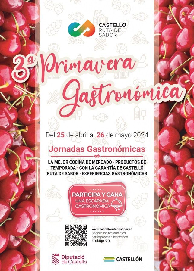 La primavera arriba a Castelló i amb ella la celebració per tercer any consecutiu de les Jornades Gastronòmiques, en les quals els restaurants i gastrobars que ostenten la marca Castelló Ruta de Sabor tornen a donar la benvinguda a l’estació, oferint una 3a edició de les jornades gastronòmiques centrades en la cuina de mercat i els productes de temporada. Des del 25 d’abril al 26 de maig, els restaurants i gastrobars que formen part de la marca de turisme mostraran la seua creativitat culinària en oferir les seues versions més fresques i delicioses dels sabors de la primavera, presentant així els seus nous menús sota el nom de Castelló Ruta de Sabor.