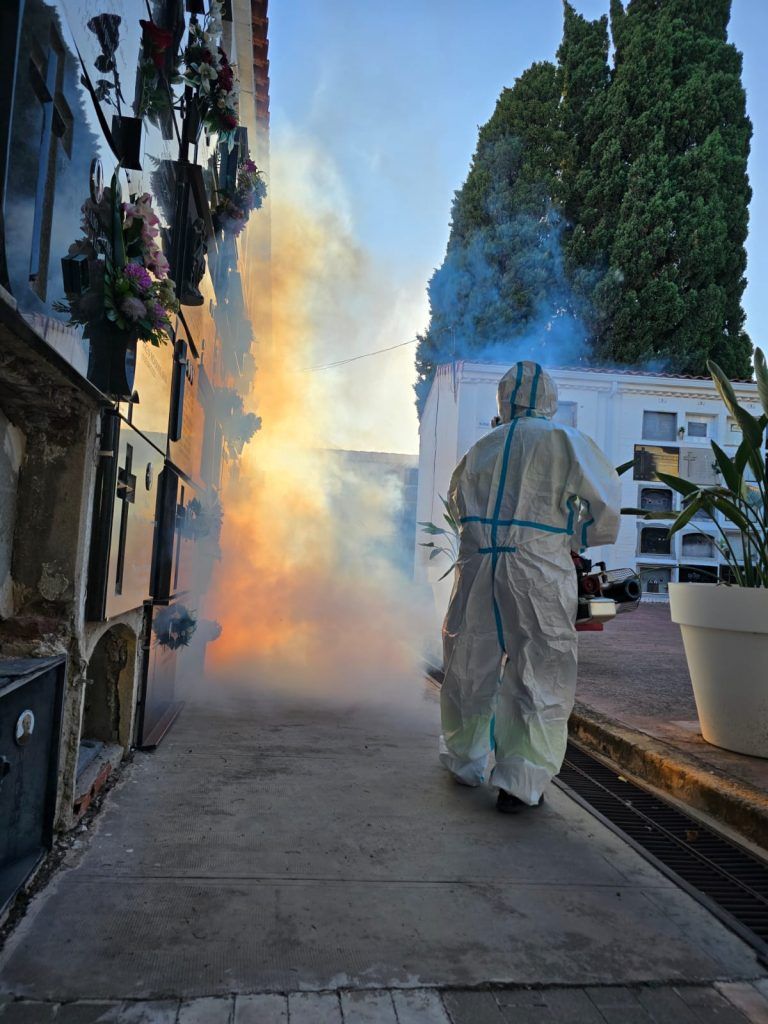 L’empresa concessionària, ha sigut l’encarregada d’executar els treballs mitjançant la tècnica de nebulització i polvorització al llarg d’aquesta setmana. Aquesta actuació de control de plagues s’anticipa a les tasques tradicionals de condicionament del camp sant, que inclouen la neteja exhaustiva i l’adequació general de la instal·lació per a rebre la ciutadania.