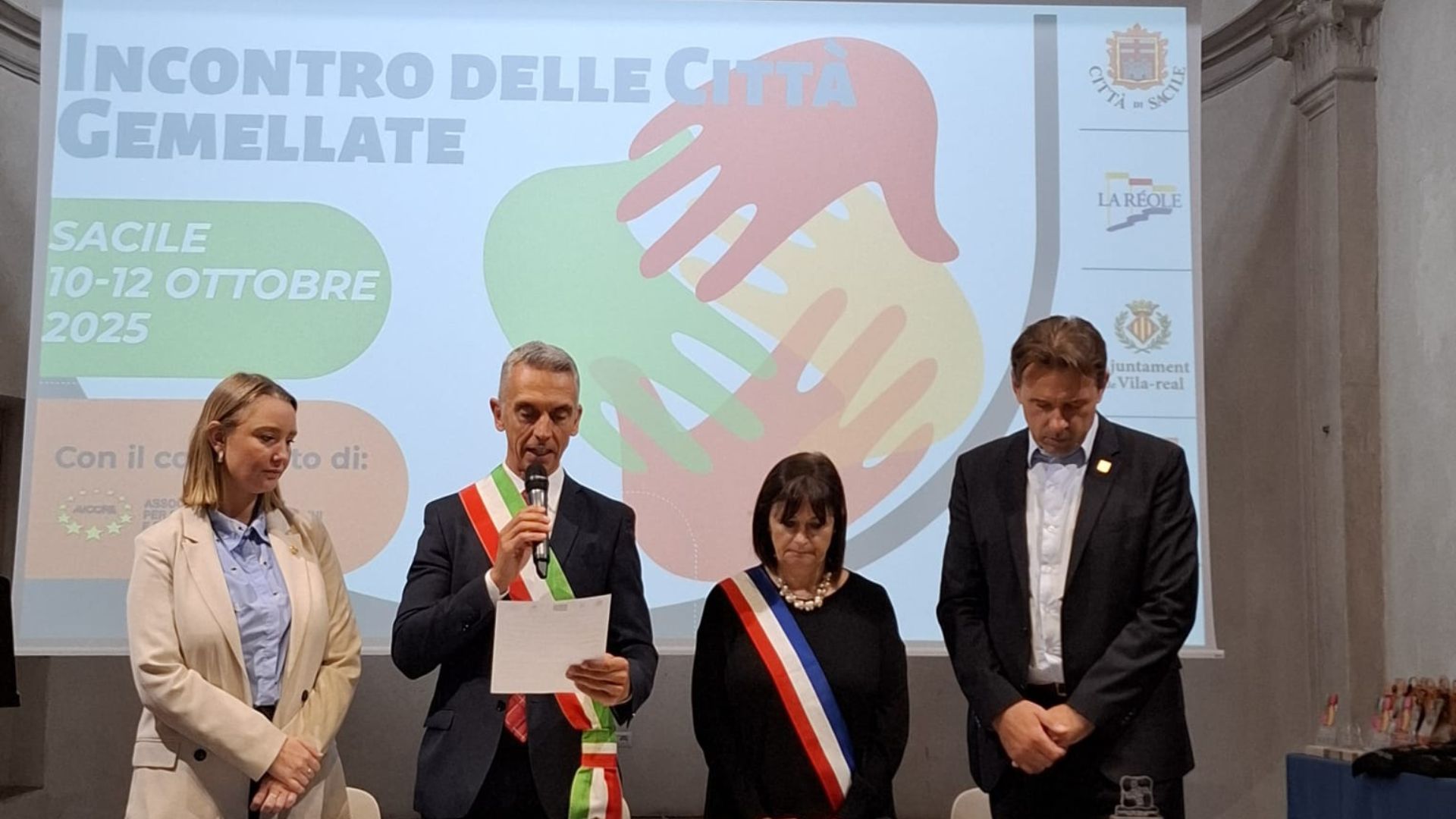 La trobada ha inclòs actes públics com conferències i encontres amb entitats locals, una missa cantada amb la Cappella Musicale del Duomo de Sacile i, com a moment culminant, la cerimònia oficial de renovació dels agermanaments, celebrada a l’església de Sant Gregori. En aquest acte es van commemorar els 25 anys del vincle entre Sacile i La Réole i els 10 anys de l’agermanament entre Sacile i Vila -real, signat l’abril de 2014 pels alcaldes José Benlloch i Roberto Ceraolo.