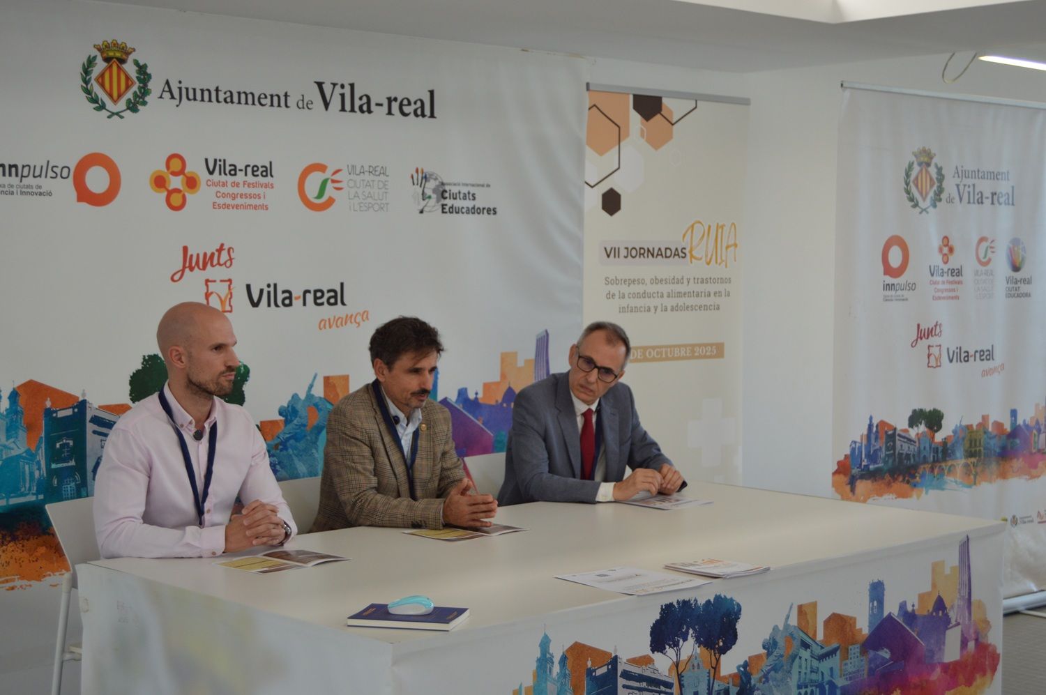 Imatges de la inauguració de les VII Jornades RUIA sobre sobrepès, obesitat i trastorns de conducta alimentària en la infància i adolescència, en la qual ha participat el regidor de Serveis Socials i Sanitat, Toni Marín; Vicente Cabedo Mallol, president de la Red de Universidades por la Infancia y la Adolescencia (RUIA), i Alejandro Ribes Ferrer , director del centre associat de la UNED a Vila -real.