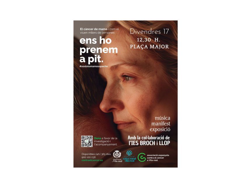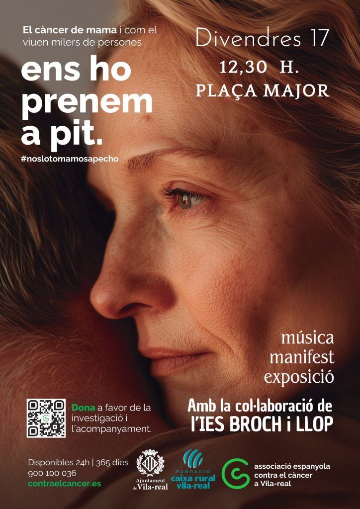 El proper divendres 17 d’octubre a les 12,30 hores, l’Associació Espanyola Contra el Càncer de Vila -real (AECC), celebra una jornada de conscienciació contra el càncer de mama amb el lema “ens ho prenem a pit”.