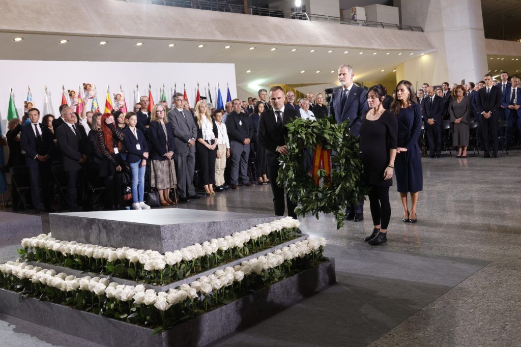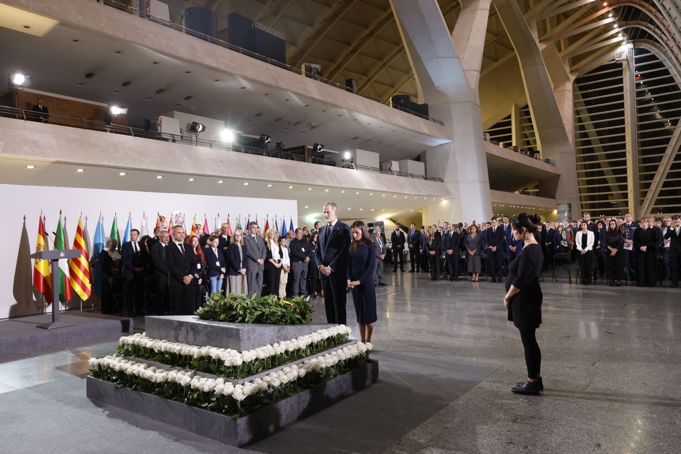 El homenaje, celebrado en la Ciudad de las Artes y las Ciencias, ha estado presidido por los reyes Felipe VI y Letizia, acompañados por el presidente del Gobierno, Pedro Sánchez , y por numerosas autoridades estatales, autonómicas y locales. En el espacio central, 237 flores blancas formaban un círculo de memoria en honor a quienes perdieron la vida (229 en la provincia de Valencia y ocho más en Castilla-La Mancha y Andalucía), junto a una corona de laurel y las banderas de España, las comunidades autónomas y la Unión Europea.