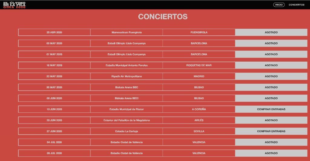 Pero el giro más emocionante vendrá después. Una vez acabada la gira de teatros, la maquinaria de El Último de la Fila se pondrá en marcha y ¡a toda pastilla! El regreso del grupo ha sido una locura colectiva sin precedentes, vendiendo casi medio millón de entradas y demostrando su capacidad para llenar estadios tan imponentes como el Metropolitano de Madrid, La Cartuja de Sevilla o el Olímpico de Barcelona (en este caso tiene las entradas agotadas para dos noches diferentes). La vuelta fue una locura colectiva, algo que explica que, a las pocas horas de sacar las entradas, estas ya estaban agotadas en todas las ciudades que visitará la formación de Manolo García y Quimi Portet.